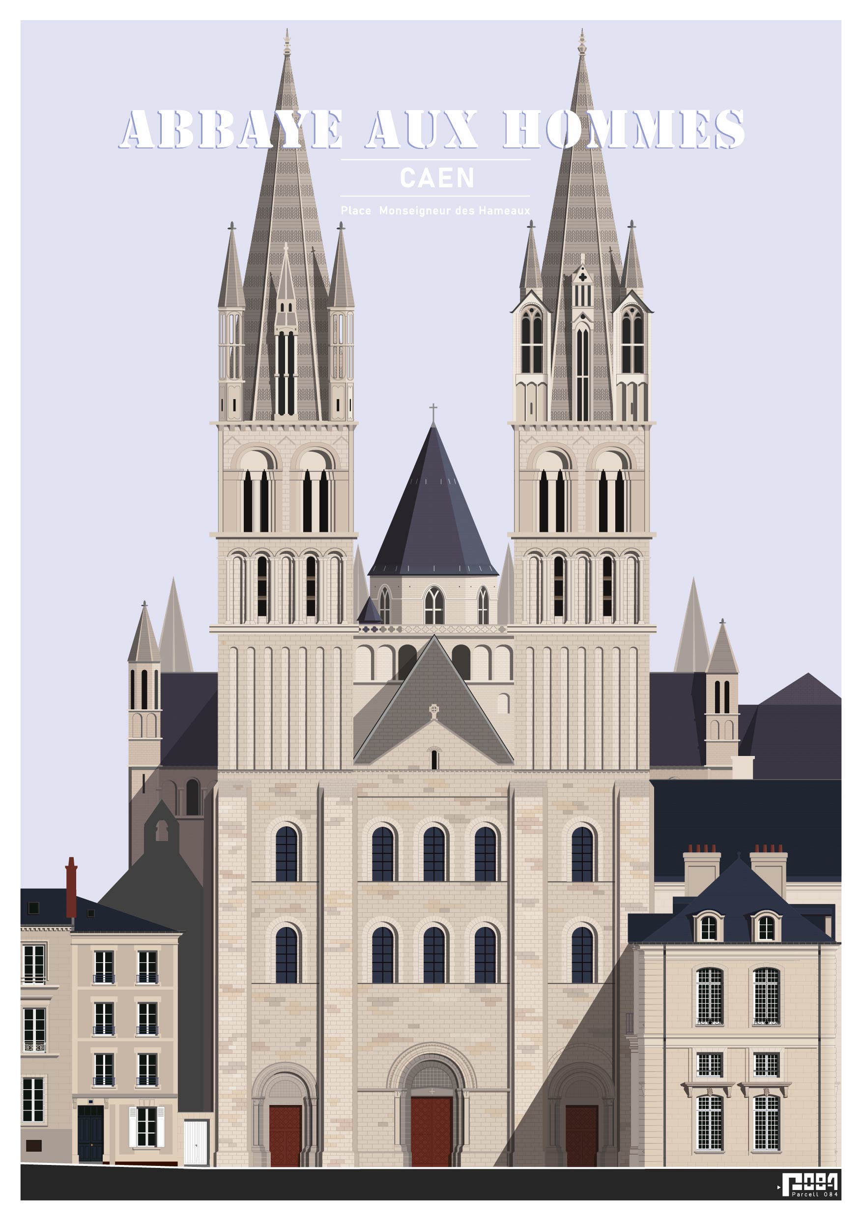 Façade de la remarquable Abbaye-aux-Hommes de la ville de Caen. Disponibles en différents formats, imprimée en Normandie sur papier 100% recyclé, 250g.
